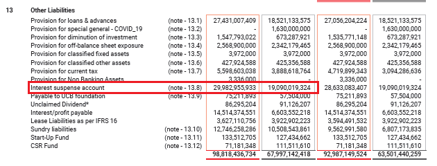 এই বাস্তবতা প্রথম প্রকাশ পায় ২০২৪ বার্ষিক প্রতিবেদনে। সেখানে দেখা যায়, ব্যাংকের ইন্টারেস্ট সাসপেন্সের পরিমাণ ২০২৩ সালে ছিল ১,৯০৯ কোটি ১৯ হাজার ৩২৪ টাকা, যা ২০২৪ সালে বেড়ে দাঁড়িয়েছে ২, ৯৯৮ কোটি ২৯ লাখ ৫৫ হাজার ৯৩৩ টাকা। অর্থ্যাৎ মাত্র এক বছরে বৃদ্ধি পেয়েছে ১,০৮৯ কোটি ২৯ লাখ ৩৬ হাজার ৬০৯ টাকা বা প্রায় ৫৭ শতাংশ।