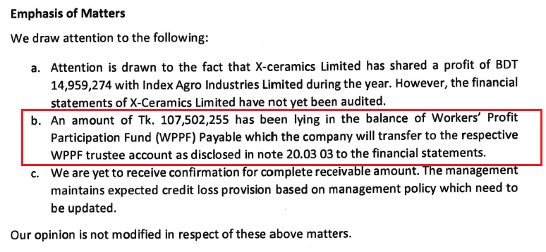 এটি কোনো অজানা বিষয় নয়। কারণ অডিটর নিজেই অডিট রিপোর্টের Emphasis of Matter অংশে বিষয়টি আলাদা করে উল্লেখ করেছেন। সেখানে স্পষ্টভাবে বলা হয়েছে, কোম্পানি আইন অনুযায়ী পুরো টাকা ট্রান্সফার করেনি এবং ‘cash shortage’ বা নগদ সংকটকে কারণ হিসেবে দেখিয়েছে। অডিট রিপোর্টে কোনো বিষয় যখন আলাদা করে Emphasis of Matter হিসেবে আসে, তখন সেটি সাধারণ হিসাবি ঝুঁকি নয়; বরং বিনিয়োগকারীদের জন্য একটি গুরুত্বপূর্ণ সতর্কবার্তা।