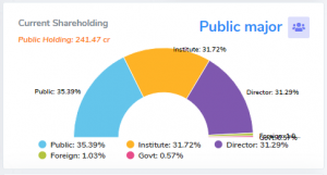 চিত্র-৪: কোম্পানির শেয়ারধারনের তথ্য বিশ্লেষনে দেখা যায়, উদ্যোক্তা-পরিচালকদের হাতে ৩১.২৯ শতাংশ, প্রাতিষ্ঠানিক বিনিয়োগকারীদের হাতে ৩১.৭২ শতাংশ, বিদেশী বিনিয়োগকারীদের হাতে ১.০৩ শতাংশ, সরকারের হাতে ০.৫৭ শতাংশ এবং সাধারণ বিনিয়োগকারীদের হাতে ৩৫.৩৯ শতাংশ শেয়ার রয়েছে।