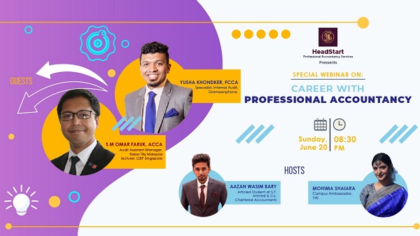 বিজনেস জার্নাল ডেস্ক: ইয়্যুথ এডভান্সমেন্ট ইন্সটিটিউট ২০ জুন, রবিবার রাত ৮:৩০ এ আয়োজন করছে হেডস্টার্ট নিবেদিত প্রফেশনাল একাউন্টেসি বিষয়ক স্পেশাল ওয়েবিনার।