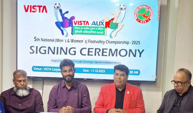 বাংলাদেশ ফুটভলি অ্যাসোসিয়েশনের আয়োজনে আগামী মাসে শুরু হতে যাচ্ছে ‘৫ম জাতীয় পুরুষ ও নারী ফুটভলি প্রতিযোগিতা-২০২৫।’ আর এই প্রতিযোগিতায় পৃষ্ঠপোষকতার হাত বাড়িয়ে দিতে যাচ্ছে বাংলাদেশের স্বনামধন্য ইলেকট্রনিকস পণ্য প্রস্তুতকারী প্রতিষ্ঠান ‘ভিসতা ইলেকট্রনিকস লিমিটেড’।