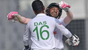 এই মুহূর্তে লিটনের সঙ্গে ক্রিজে ৩০ রানে অপরাজিত আছেন মেহেদী হাসান মিরাজ। দুজনের জুটিতে এখন পর্যন্ত ৭৭ রান এসেছে। লিটন অপরাজিত আছেন ১০৩ রানে। এর আগে মুশফিকের সঙ্গে তিনি ১০৮ রানের জুটি গড়েন। মুশফিক বাংলাদেশের হয়ে যৌথভাবে সর্বোচ্চ ১৩তম সেঞ্চুরি করে ১০৬ রানে ফেরেন ম্যাথু হাম্প্রিসের বলে।