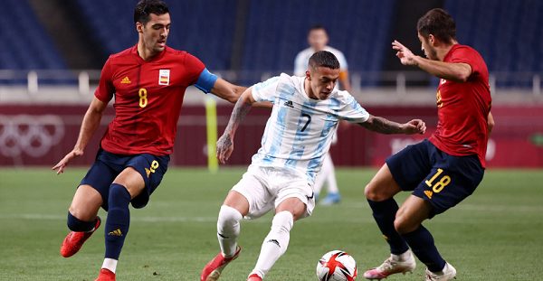 স্পেনের বিপক্ষে ম্যাচে শুরু থেকেই চাপে ছিল আর্জেন্টিনা। পুরো ম্যাচে মাত্র ৩৪ শতাংশ সময় বল পায়ে রাখতে পেরেছে তারা। প্রথমার্ধে অবশ্য গোল করতে পারেনি কোনো দল। ম্যাচের ৬৬ মিনিটে প্রথম গোল করেন স্পেনের মিকেল মেরিনো। ওই গোলেই মূলত আর্জেন্টিনার অলিম্পিকে পরের পর্বে যাওয়া বেশ কঠিন হয়ে পড়ে।