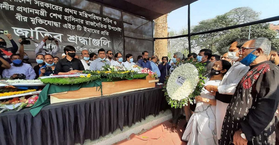 এইচ টি ইমাম এবারে শহীদ মিনারে এসেছেন নিথর দেহে। সেখানে রাষ্ট্রপতি ও প্রধানমন্ত্রীর পক্ষে তার মরদেহে শ্রদ্ধা নিবেদন করা হয়। শ্রদ্ধা নিবেদন করেন আওয়ামী লীগের নেতারাও।