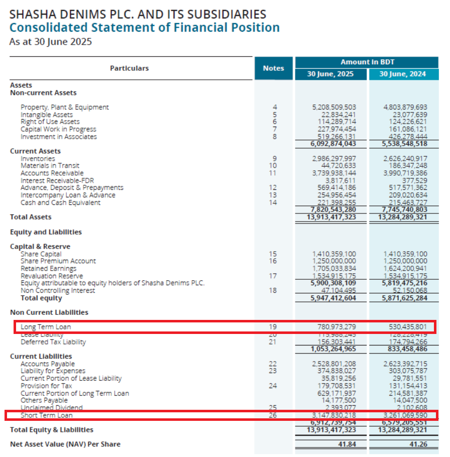 এই বিশাল সুদের খরচ, যা মূলত ব্যাংক ঋণের কারণে বৃদ্ধি পেয়েছে, কোম্পানির মুনাফাকে খেয়ে ফেলছে। এই সুদের চাপের কারণে শাশা ডেনিমসের লাভের একটি বড় অংশ হারিয়ে যাচ্ছে এবং তারা ঋণ পরিশোধের জন্য কাজ করছে, যা শেয়ারহোল্ডারদের জন্য একটি বড় উদ্বেগের বিষয়।