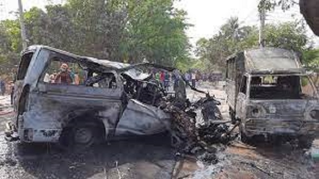 সিসিটিভির ফুটেজে দেখা যায়, ঢাকা-রাজশাহী মহাসড়কের রাজশাহীর কাটাখালী এলাকা। নাটোর থেকে ছেড়ে আসা কালো রঙের একটি মাইক্রোবাস দ্রুতগতিতে রাজশাহী শহরের দিকে যাচ্ছিল। এ সময় বিপরীত দিক থেকে আসা ঢাকাগামী হানিফ পরিবহনের যাত্রীবাহী একটি বাসের সঙ্গে মুখোমুখি সংঘর্ষ হয়। এতে মাইক্রোবাসের গ্যাস সিলিন্ডার বিস্ফোরণ হয়ে আগুন ধরে যায়। এতে মুহূর্তেই নিভে যায় ১৭ মানুষের প্রাণ।