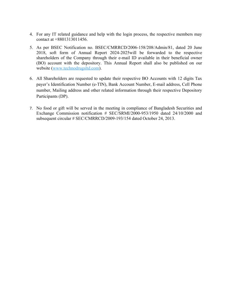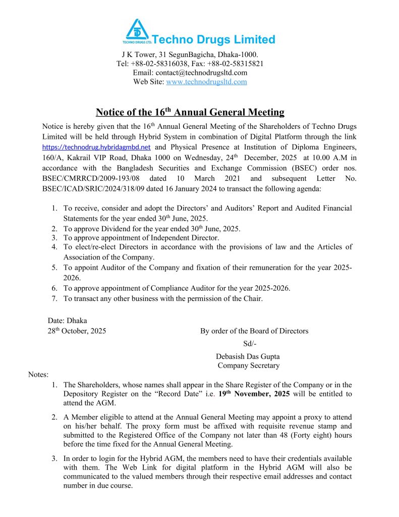 AGM Notice of Techno Drugs Limited