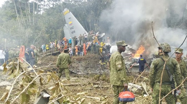 কলম্বিয়ায় সামরিক বিমান বিধ্বস্ত, নিহত ৬৬