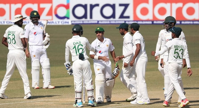 বিজনেস জার্নাল প্রতিবেদক: জয়ের জন্য পাকিস্তানকে করতে হবে ২০২ রান। তাইজুলের আউটে দ্বিতীয় ইনিংসে ১৫৭ রানে থেমেছে বাংলাদেশ। প্রথম ইনিংসের