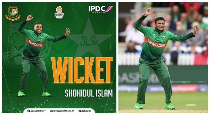বিজনেস জার্নাল প্রতিবেদক: পাকিস্তানের বিপক্ষে শেষ টি–টোয়েন্টি ম্যাচে সাকিব আল হাসানের ২০১৯ বিশ্বকাপের একটি ছবি এডিট করে তার ঘাড়ে পেসার শহিদুলের