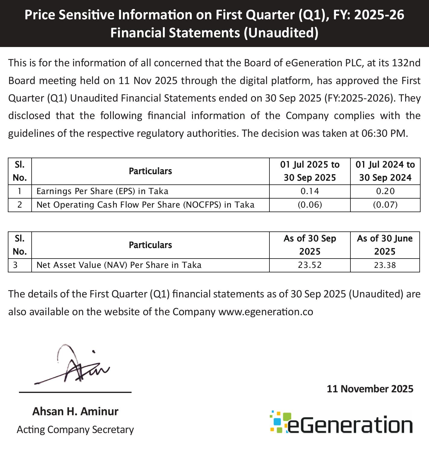 Financial Statement (Q-1) of eGeneration PLC