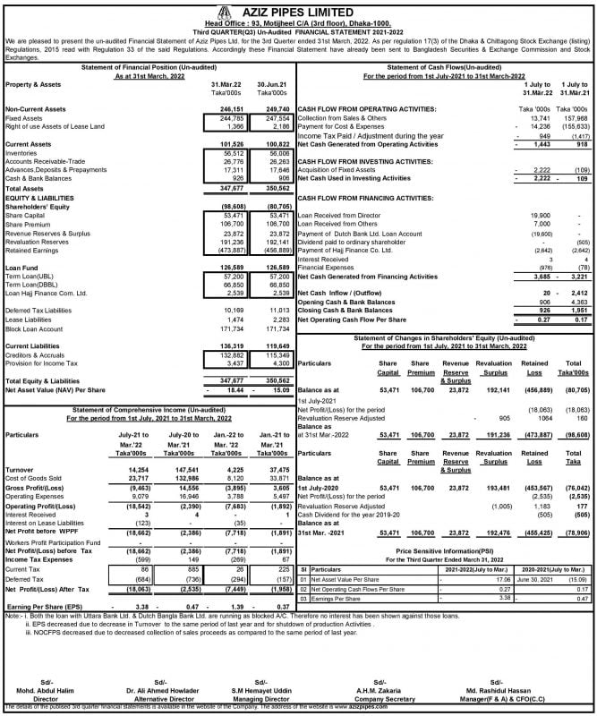 আনলিমা ইয়ার্নের ডিভিডেন্ড ঘোষণা