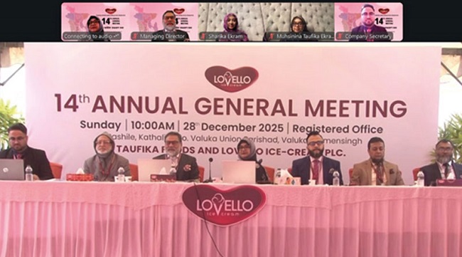 পুঁজিবাজারে তালিকাভুক্ত খাদ্য ও আনুষঙ্গিক খাতের কোম্পানি তাওফিকা ফুডস অ্যান্ড লাভেলো আইসক্রিম পিএলসির ১৪তম বার্ষিক সাধারণ সভা (এজিএম) সফলভাবে সম্পন্ন করেছে।