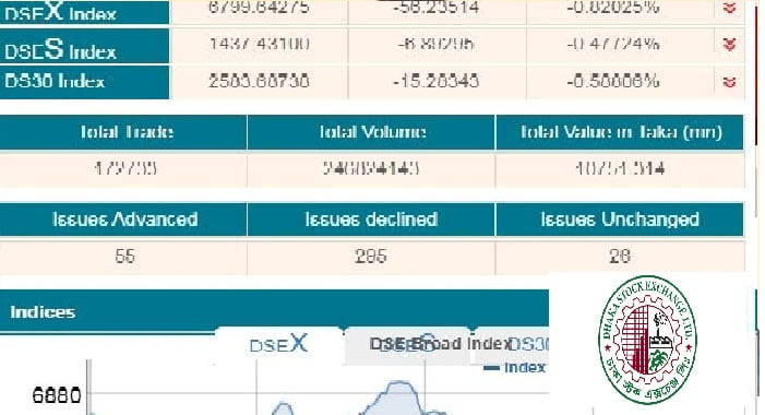 টানা ৭ কর্মদিবস দরপতন পুঁজিবাজারে