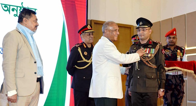 কৃতিত্বপূর্ণ কাজের স্বীকৃতিস্বরূপ পদক পেলেন ৭২ বিজিবি সদস্য